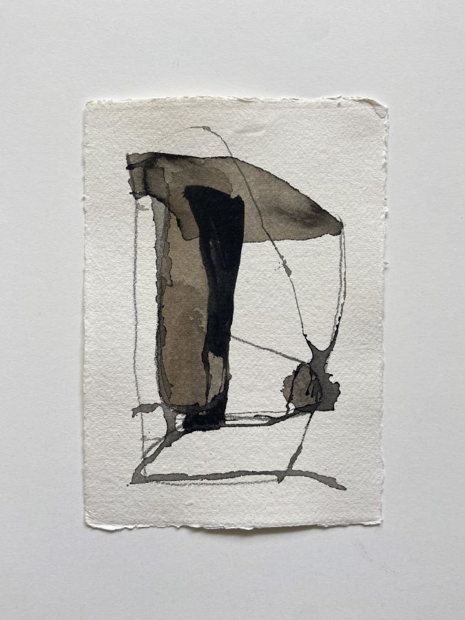 The size of the artwork is A5 (14,8 x 21cm.) and it’s made with acrylic paint and ink and old paper on cotton paper. The colours are taupe-brown and greyish.